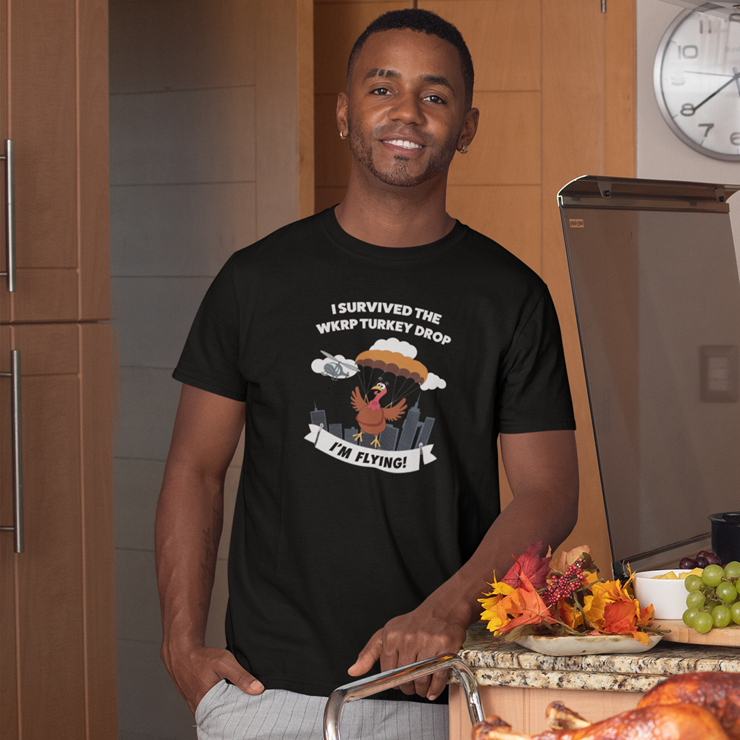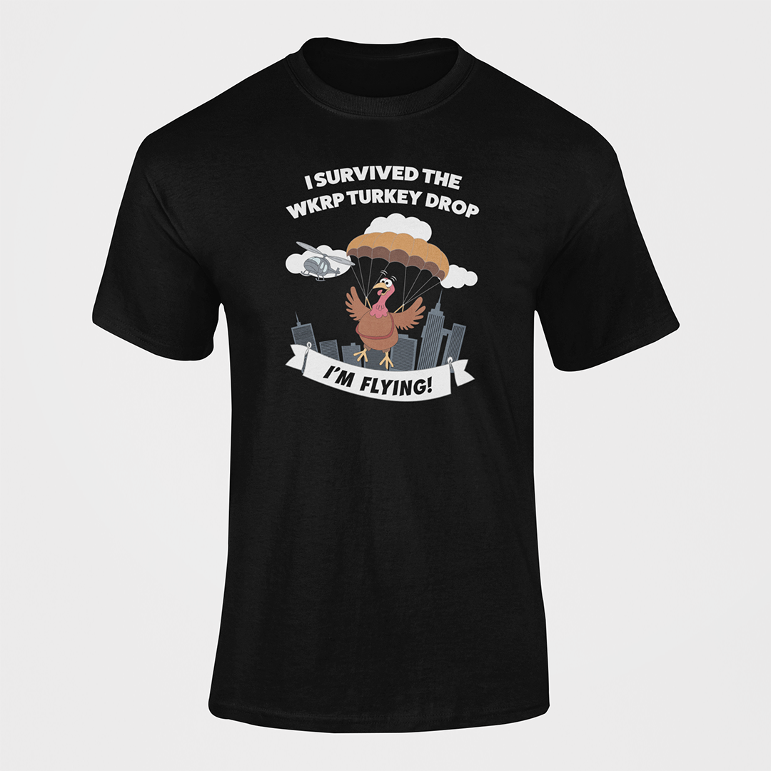 Celebrate one of TV’s most legendary Thanksgiving moments with Naughty Bear’s “I Survived the WKRP Turkey Drop” design — because nothing says holiday spirit like a flying turkey with attitude. 🦃