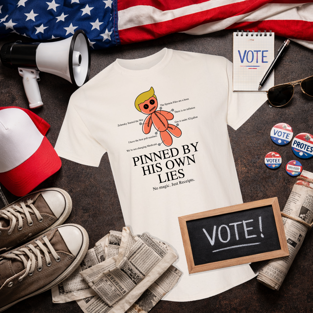 This sharp political commentary tee cuts through the noise with a voodoo-doll inspired graphic that speaks to accountability culture. Designed for those who value facts over narratives, it features bold visual callouts that reference the power of documented evidence and fact-checking. The design works as both a statement piece and conversation catalyst, perfect for political events, town halls, or anywhere truth-telling matters. Built for wearers who refuse to accept revisionist framing and demand receipts over rhetoric.