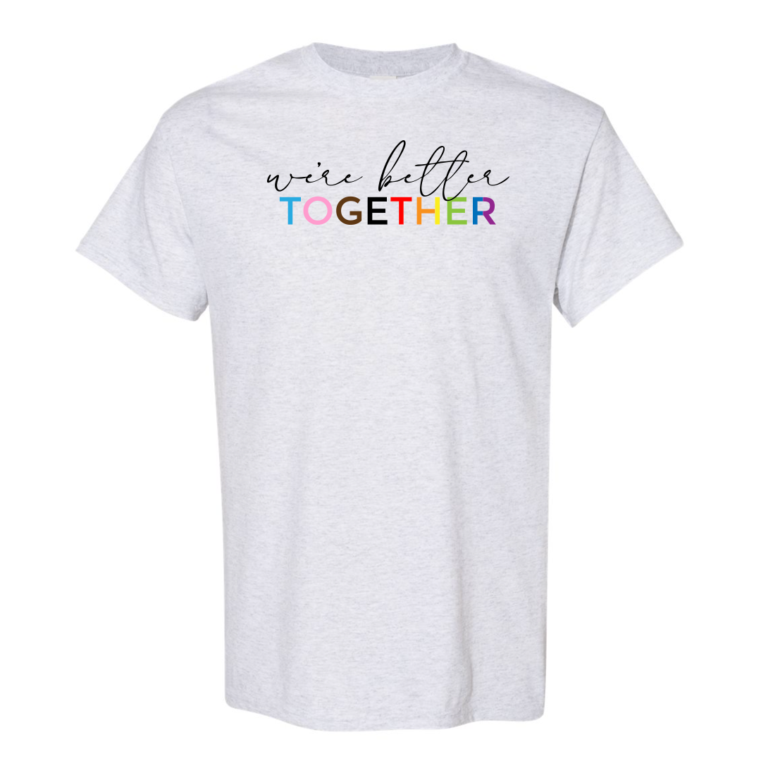 Our "We're Better Together" design in Ash Grey features a classic fit, cotton/polyester blend for unbeatable comfort and durability. The rib collar, taped neck, and reinforced shoulders make this a high-quality option. Plus, enjoy fast shipping in just 5-7 days and receive email updates with tracking information!